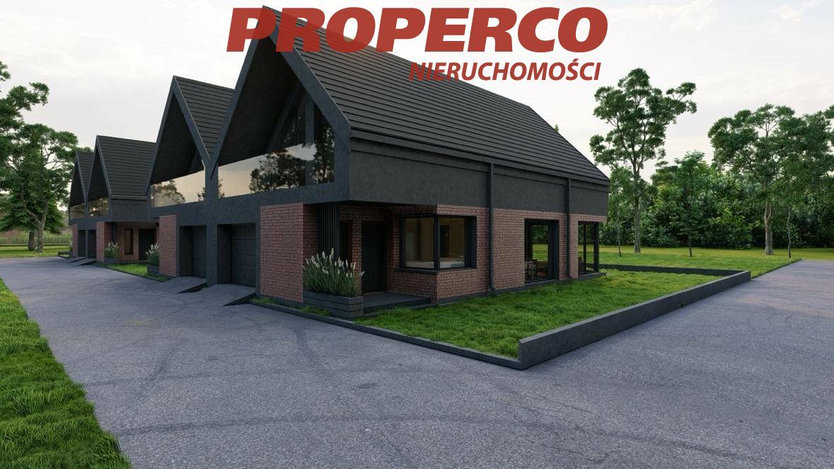 Na sprzedaż dom jednorodzinny w zabudowie bliźniaczej w stanie deweloperskim , o pow. użytkowej 139,7 m2 (pow. całkowitej 166,9 m2), zlokalizowany w miejscowości Kołomań, gm. Zagnańsk.Dom usytuowany jest na działce o pow. ok. 300 m2. Nowoczesny design, domy w kształcie "stodoły", z dużymi przeszkleniami.